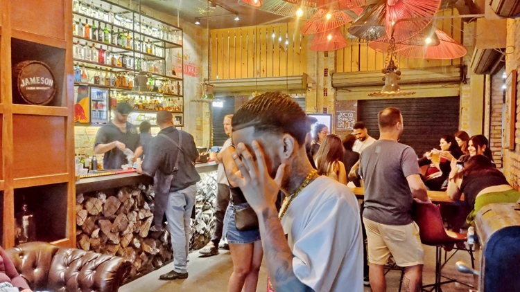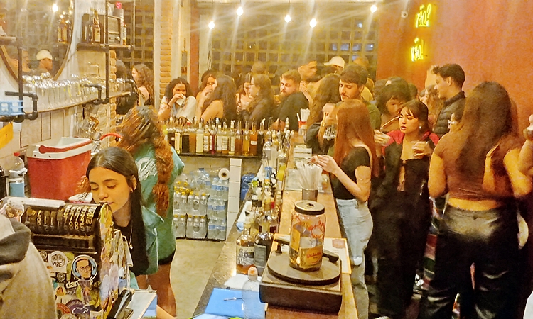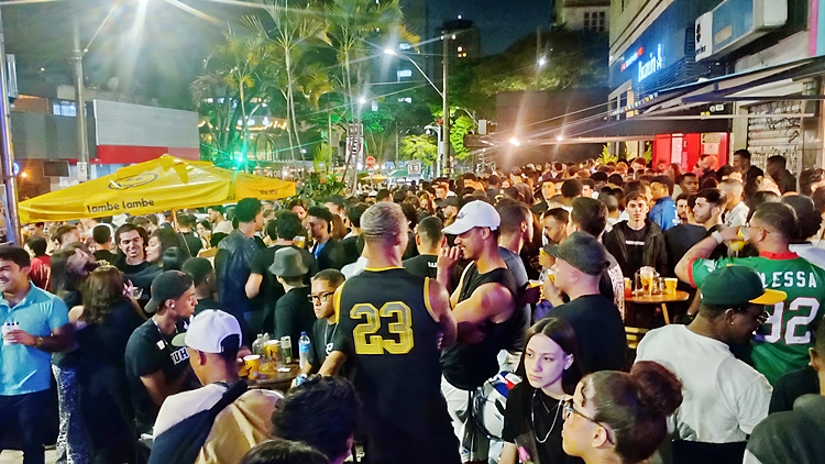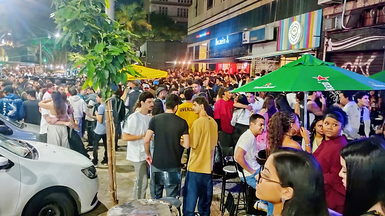 bares e calçadas cheias, especialmente nas ruas