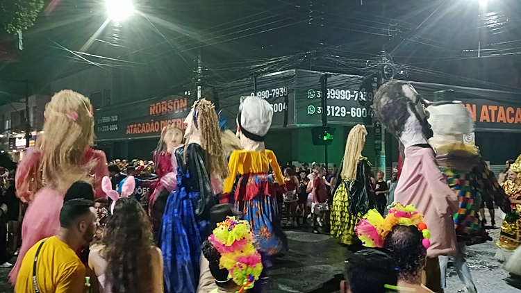 onde os famosos bonecões dos blocos desfilaram,