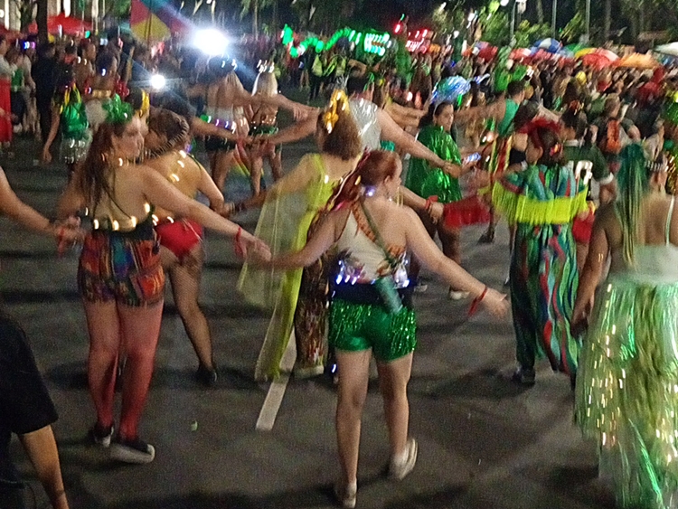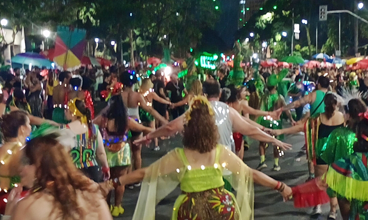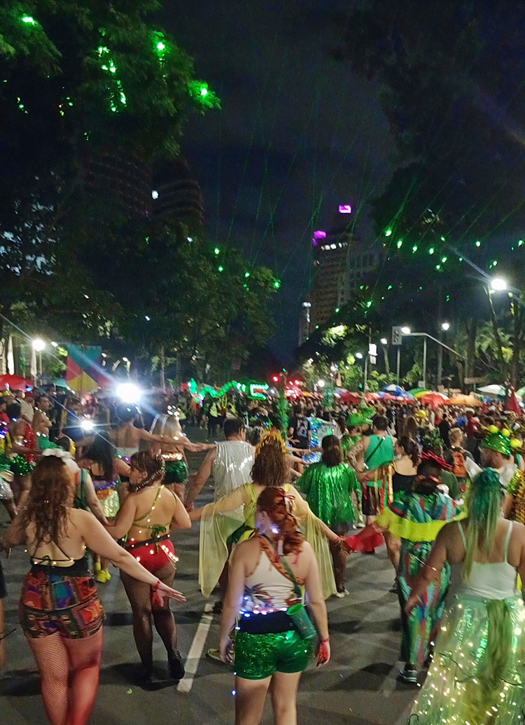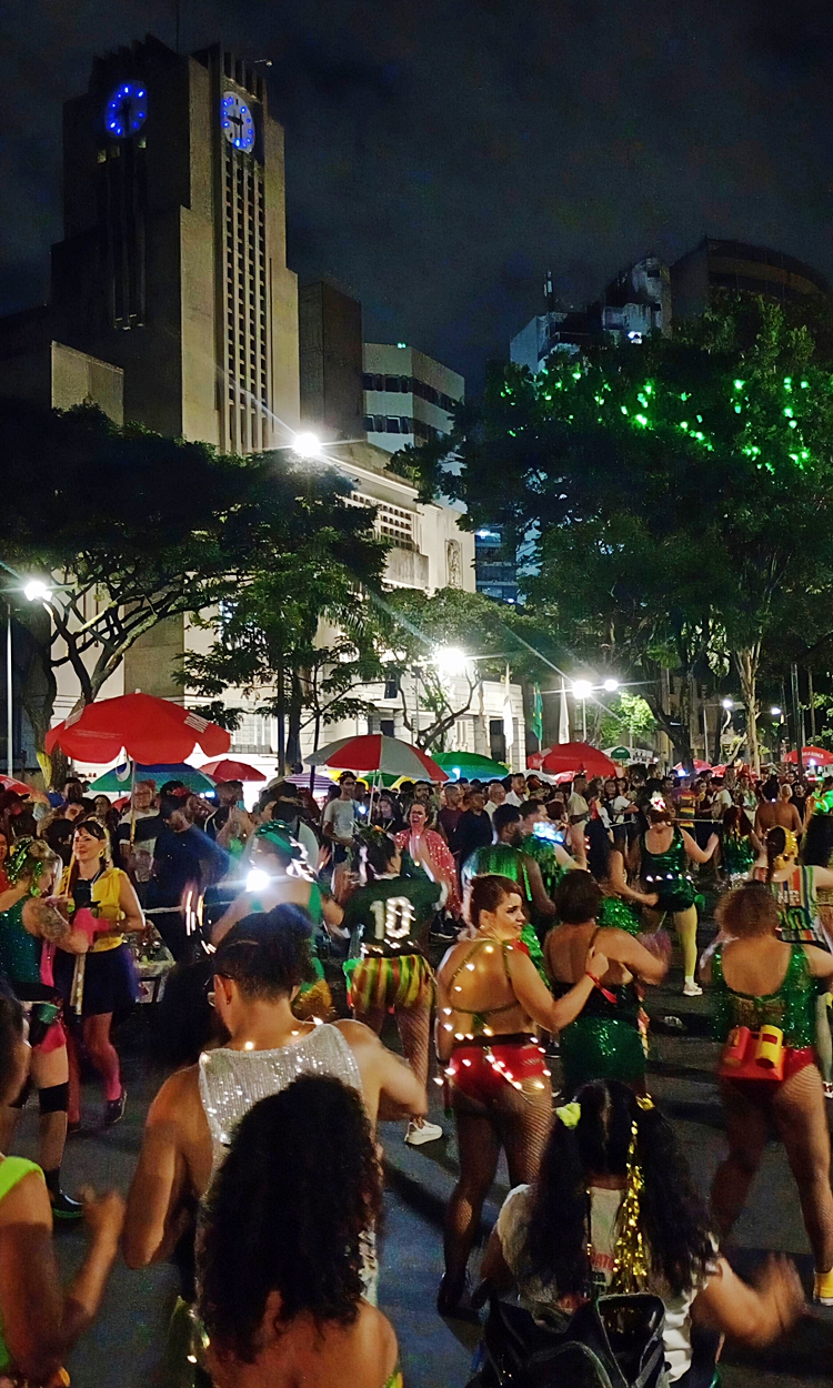 • Clima: A chuva intensa marcou o cortejo, mas não afastou os foliões. Muitos se protegeram com capas e sombrinhas, enquanto outros dançaram livremente sob a água.