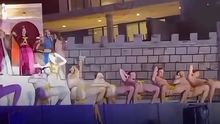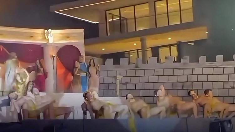 A cena, que faz parte do espetáculo "A Nossa Paixão – A Luz do Mundo", trouxe uma estética de "bacanal" para retratar a libertinagem e os excessos do palácio de Herodes. Com coreografia assinada por Vanderson José, os figurinos ousados e a performance física dos atores destacaram-se em meio ao contexto religioso da Semana Santa.