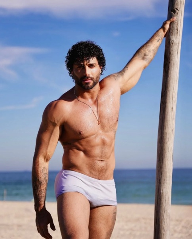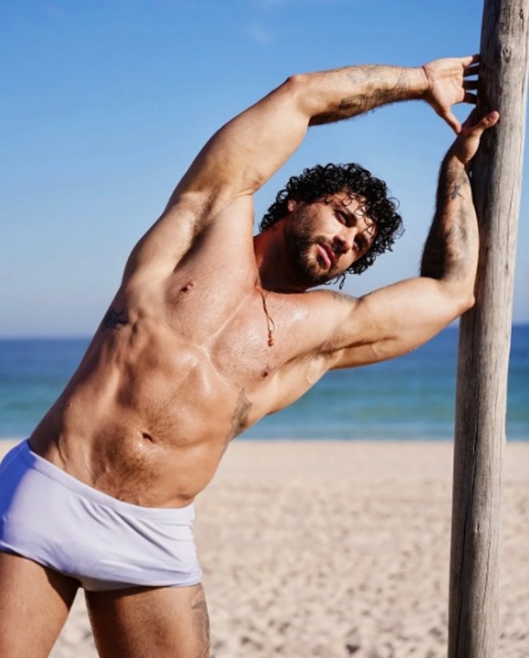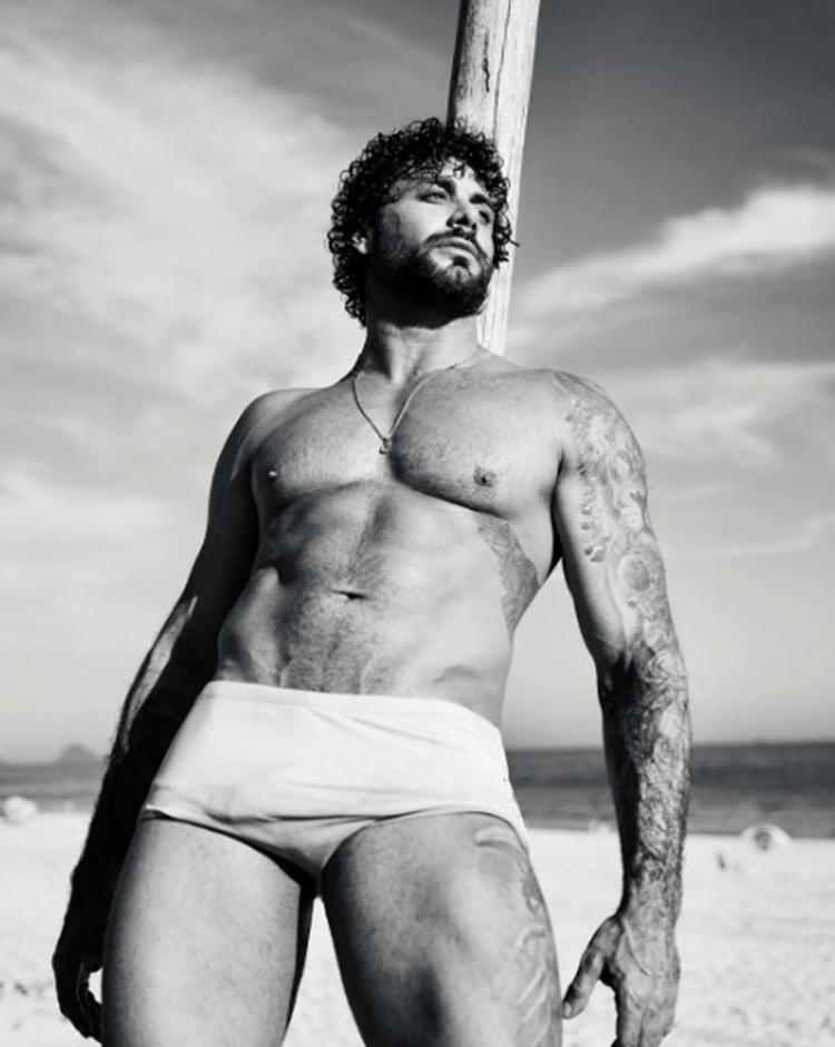 Vestindo apenas uma sunga branca, ele exibiu seu