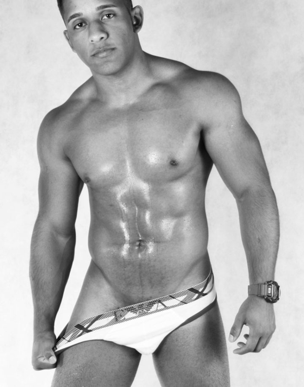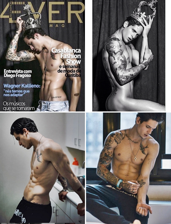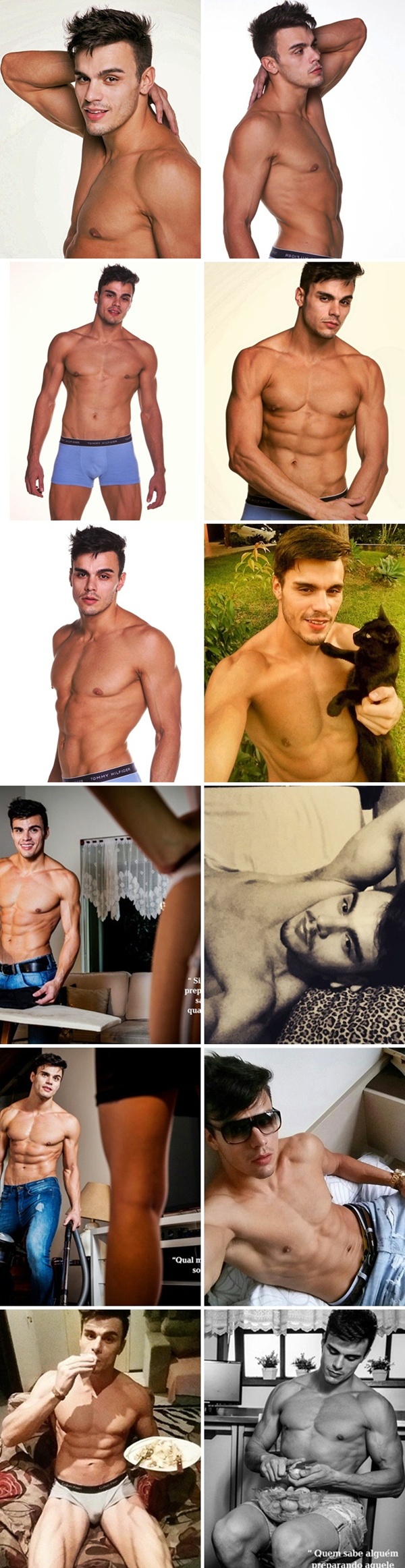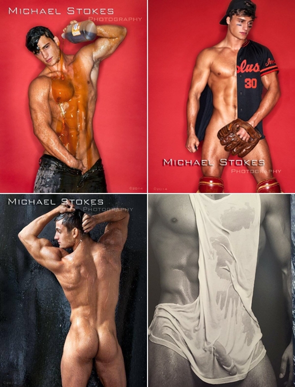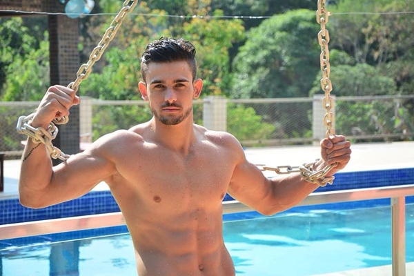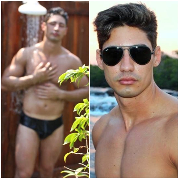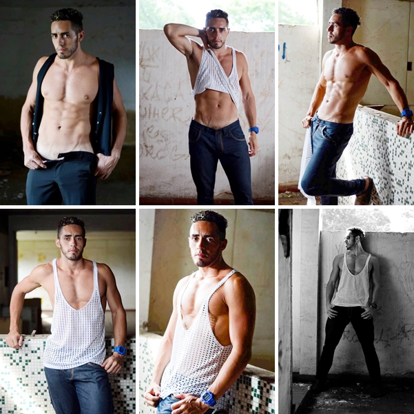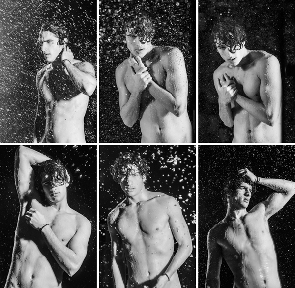 ensaio fotográfico de forma bem ousada. As imagens trazem o rapaz se melecando com o que parece ser mel, pagando bundinha e, o melhor, com a camiseta branca molhada, marcando tudo na frente.