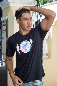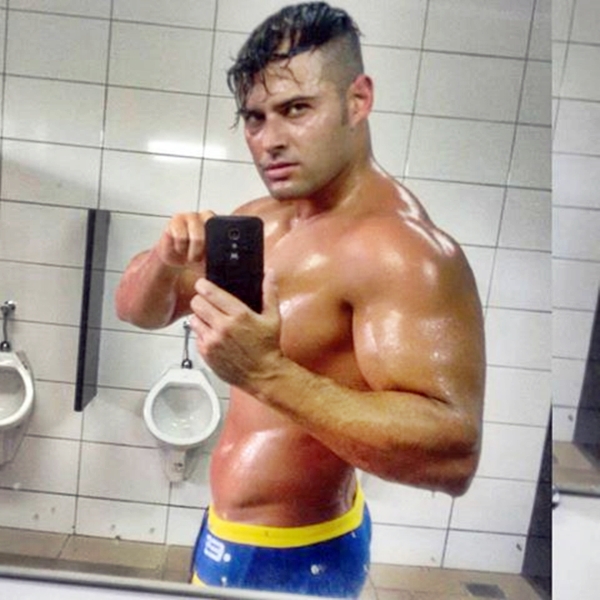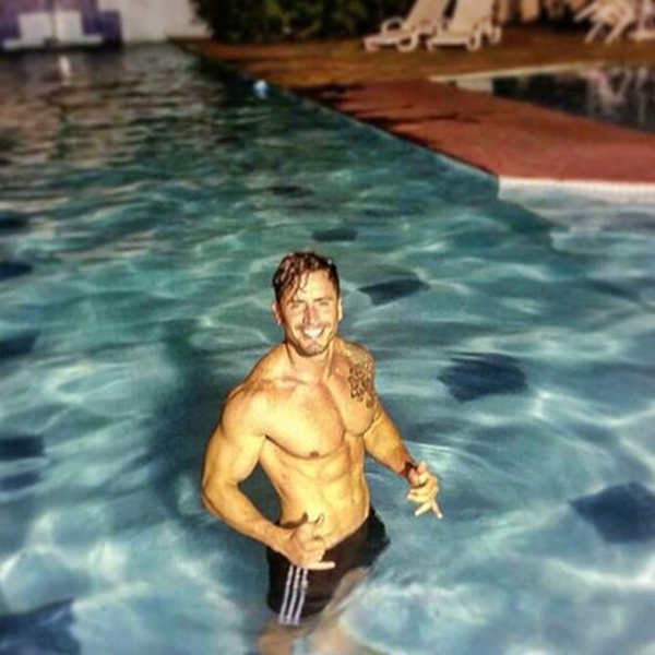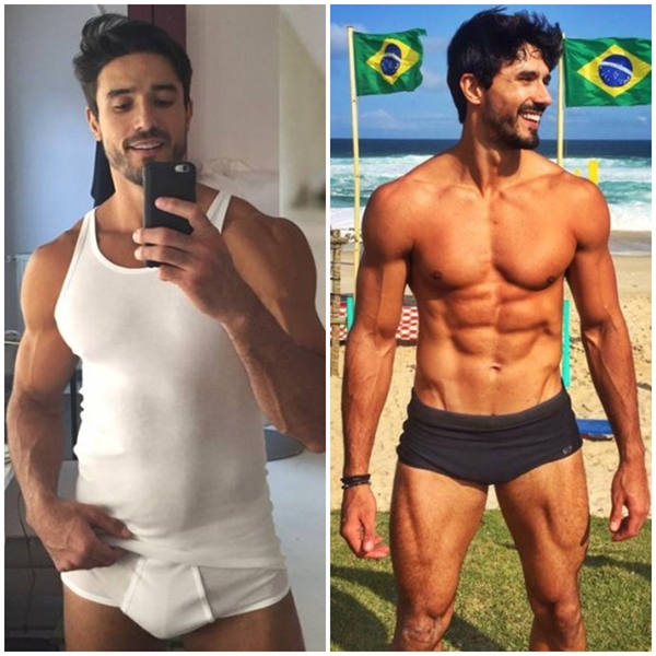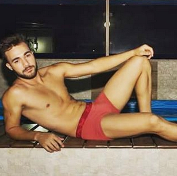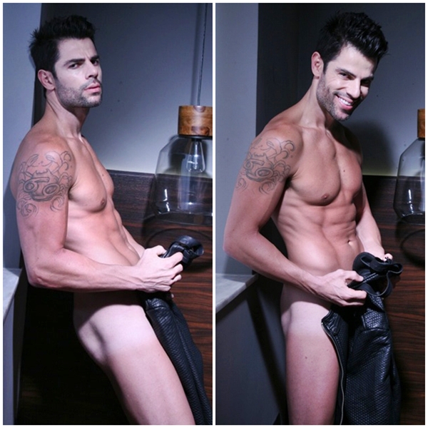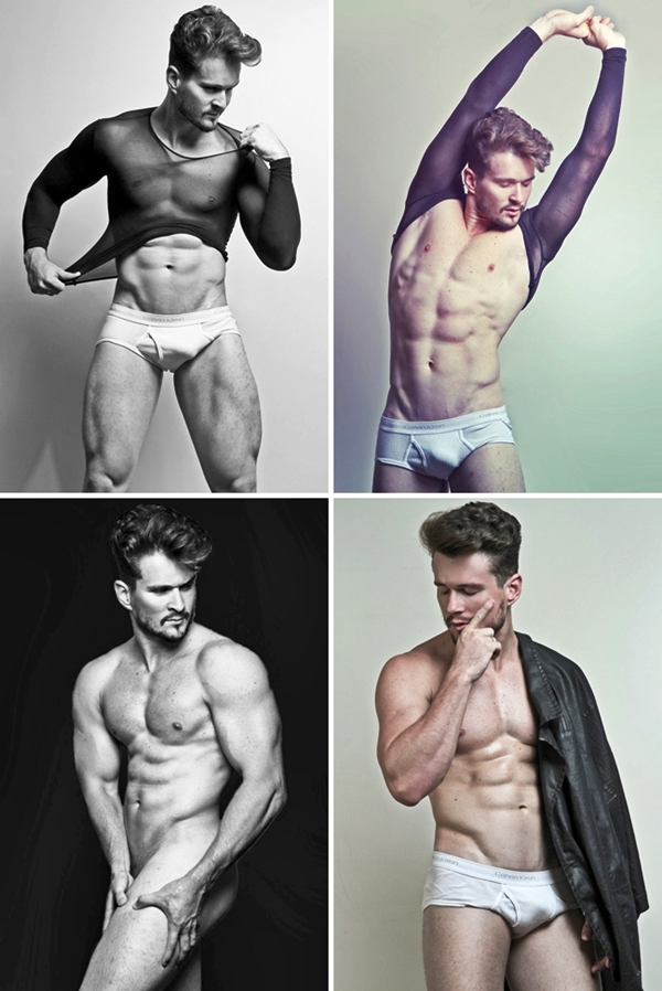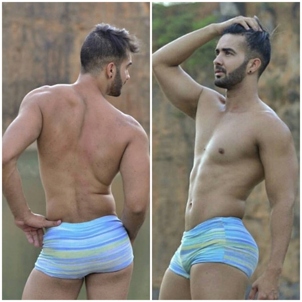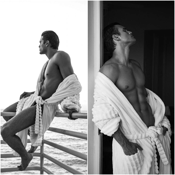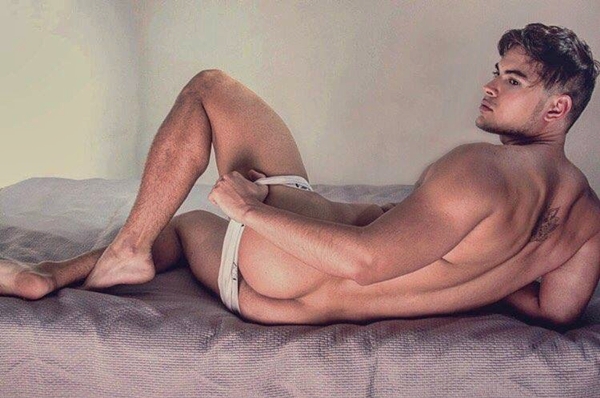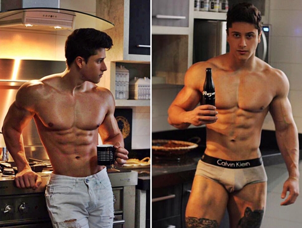 ensaio fotográfico de forma bem ousada. As imagens trazem o rapaz se melecando com o que parece ser mel, pagando bundinha e, o melhor, com a camiseta branca molhada, marcando tudo na frente.