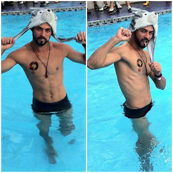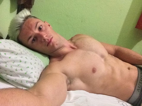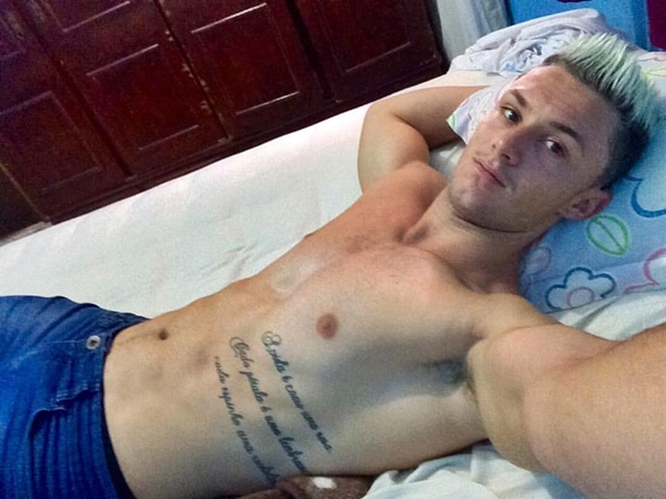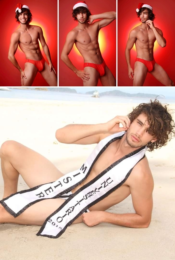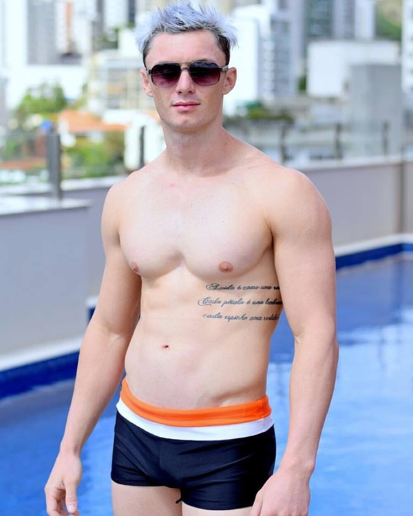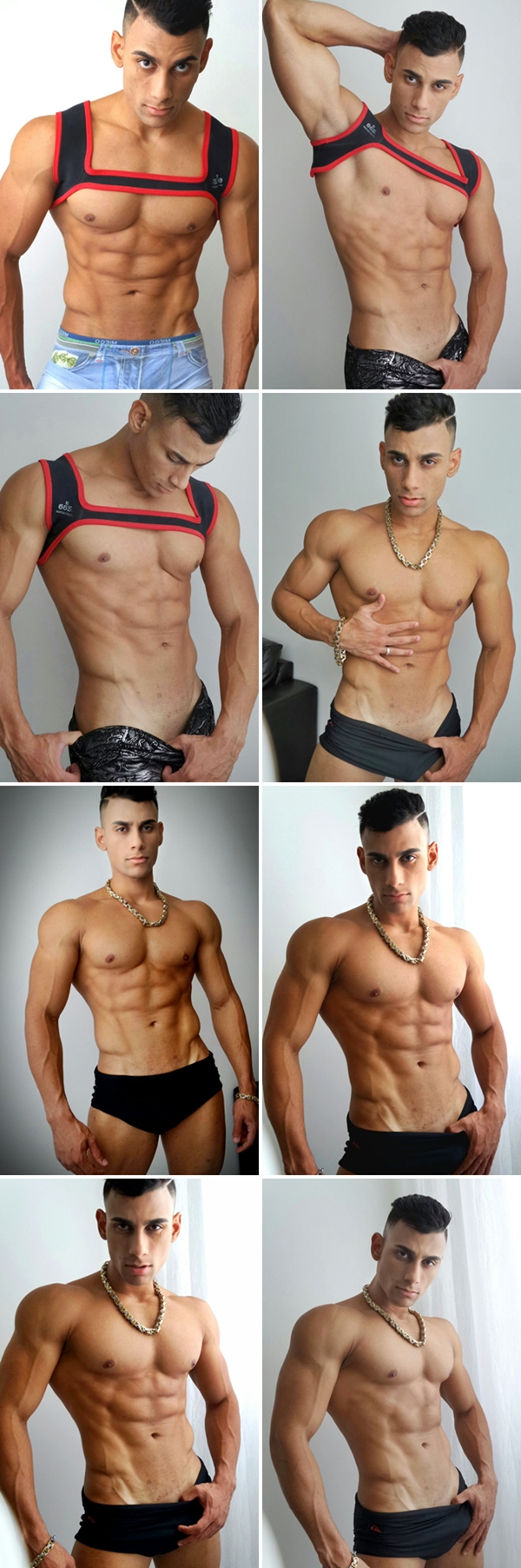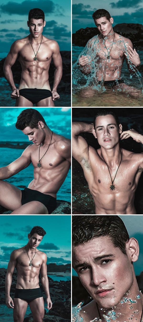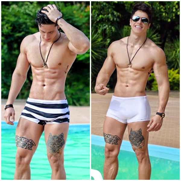 que mostram a beleza do modelo de 18 anos vestindo uma sunga preta e exibindo o seu corpo de 1,86m de altura e 80 quilos.
