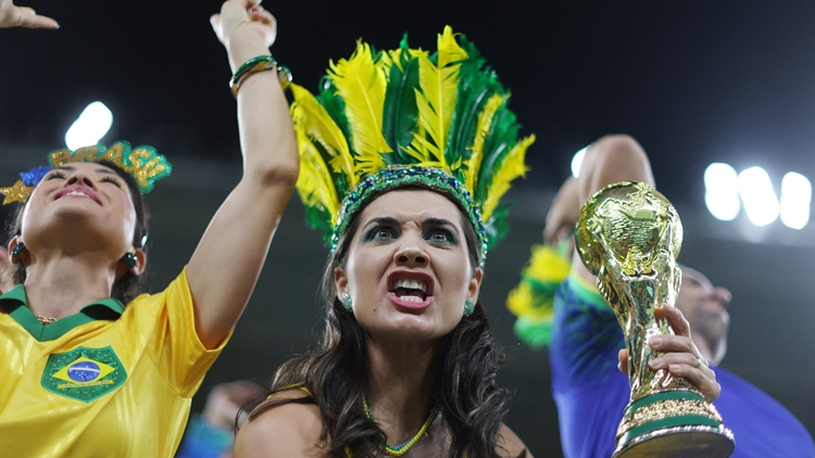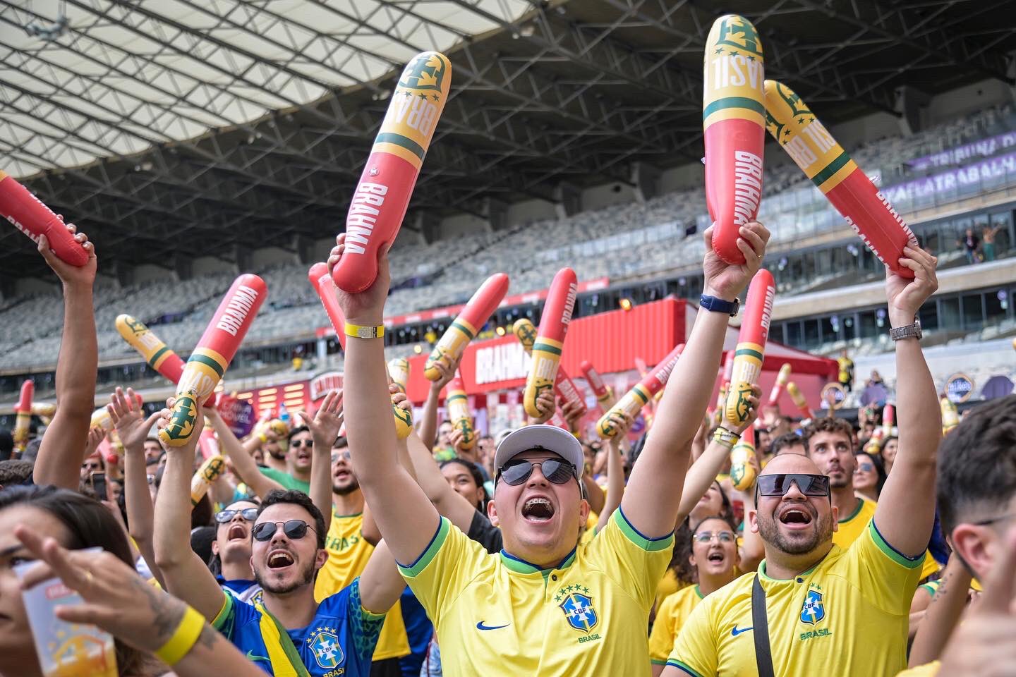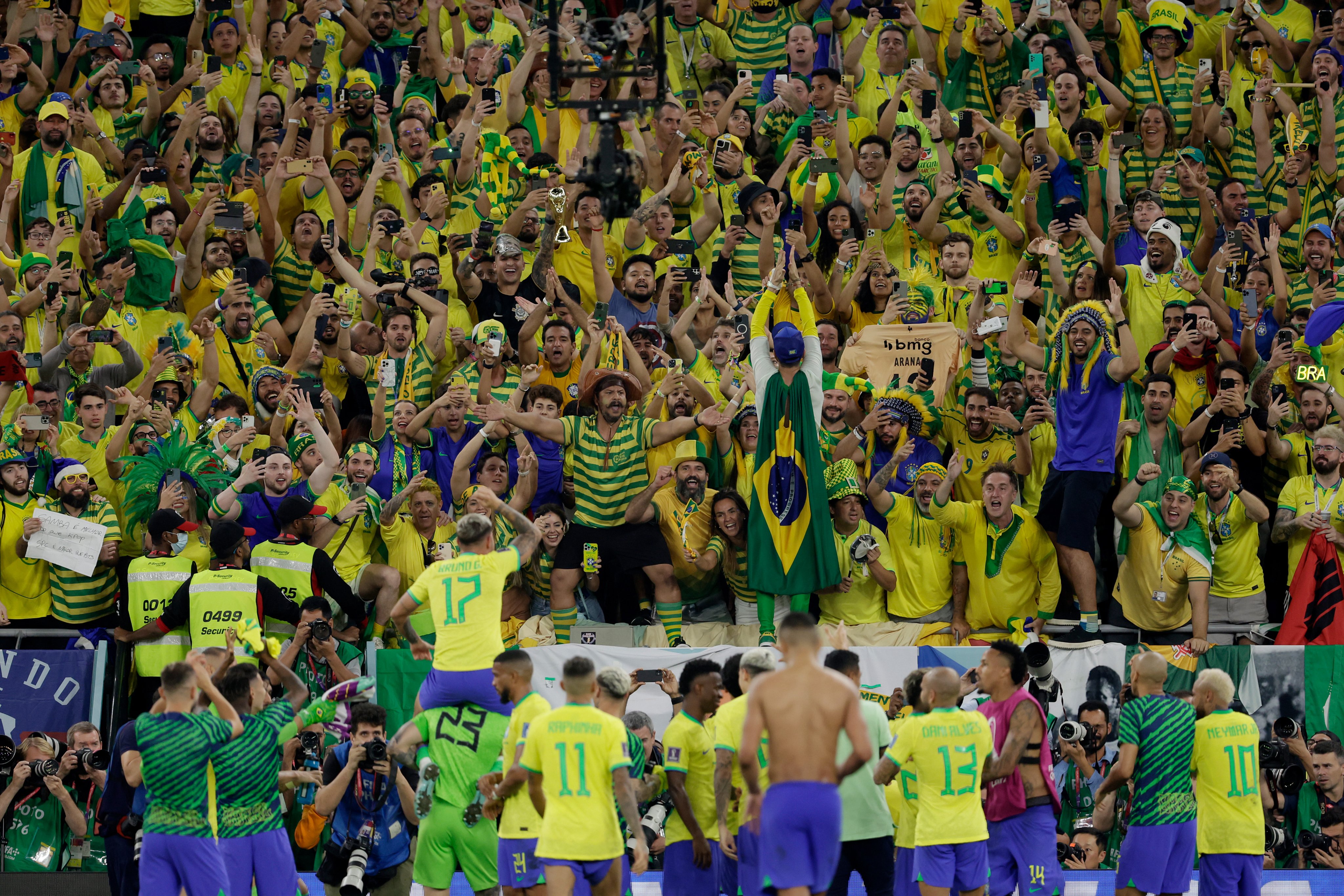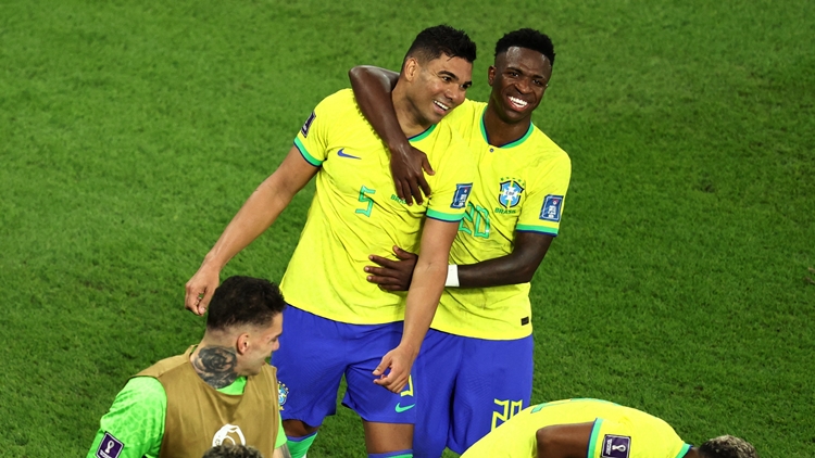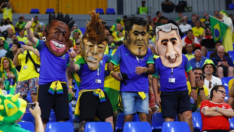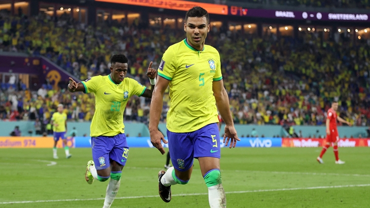 marcação e bate de primeira, marcando o quarto gol brasileiro.