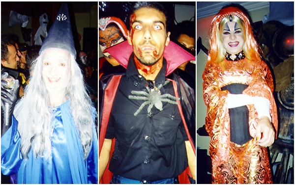 gente fantasiada e animada na sexta, (31.10). Um júri