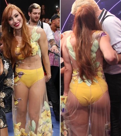chamou mais atenção. Com um vestido transparente