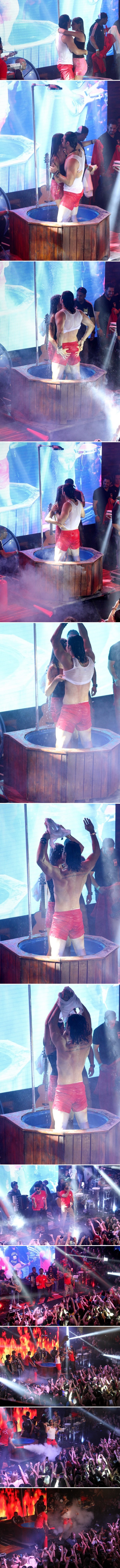 chuveiro com banheira, Mariano dança com a fã e
