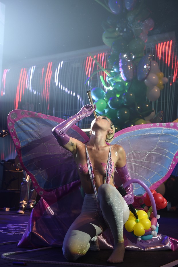 em Nova York. Durante a performance, Miley acendeu