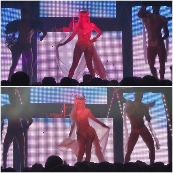 palco com fantasias luxuosas e arrasaram na