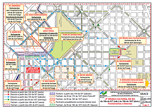 Fechamento da Rua Guaicurus entre as ruas São Paulo e Curitiba, a partir das 22h do dia 08/07 até as 5h do dia 11/07.