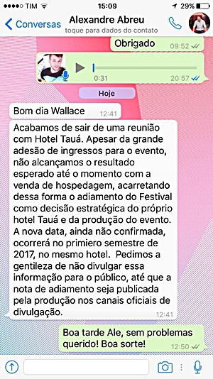 o prodotor do evento, nãot tinha se manifestado até