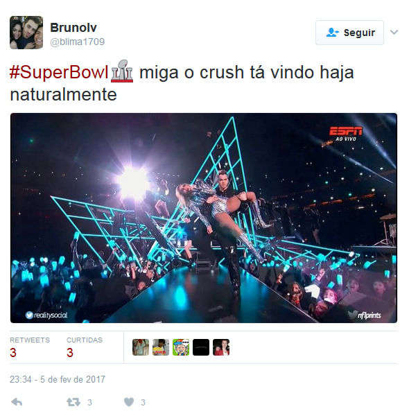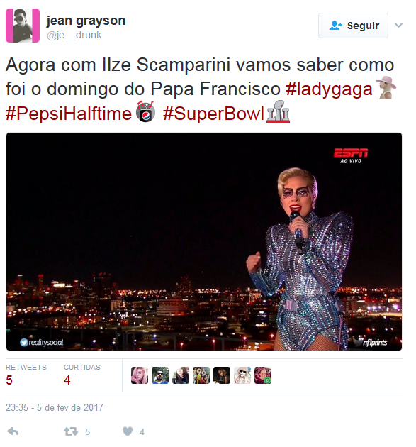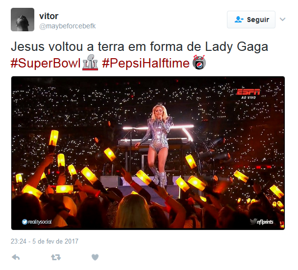 "Lady Gaga no Super Bowl. Ele é demais. Arrasou"