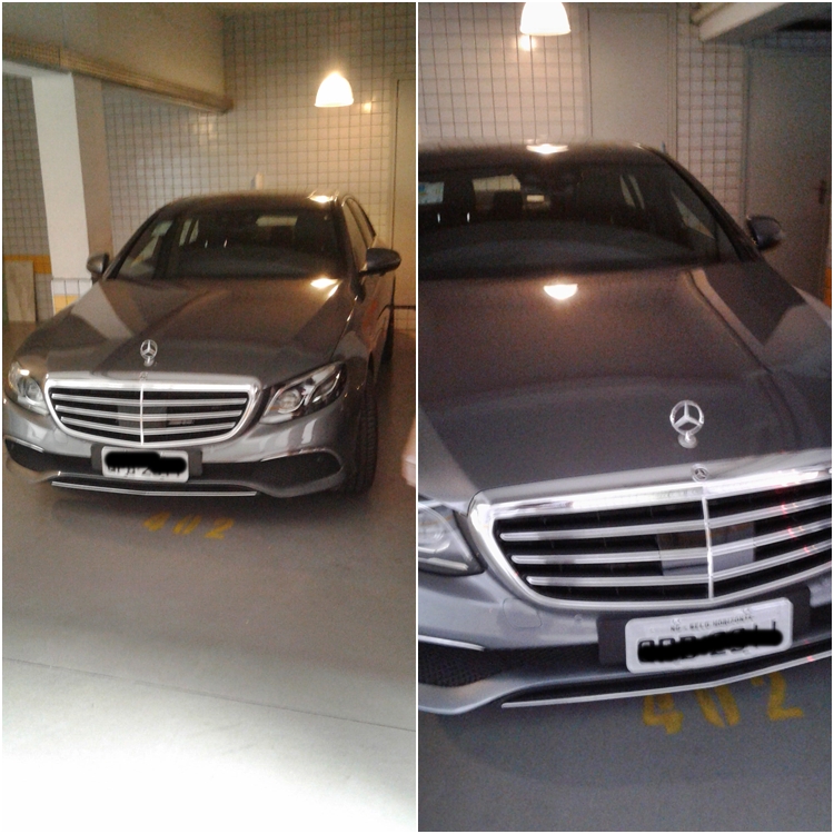 Na garagem uma Mercedes Bens clássica