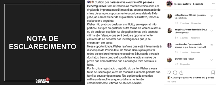 mensagens de apoio ao cantor e a dupla.