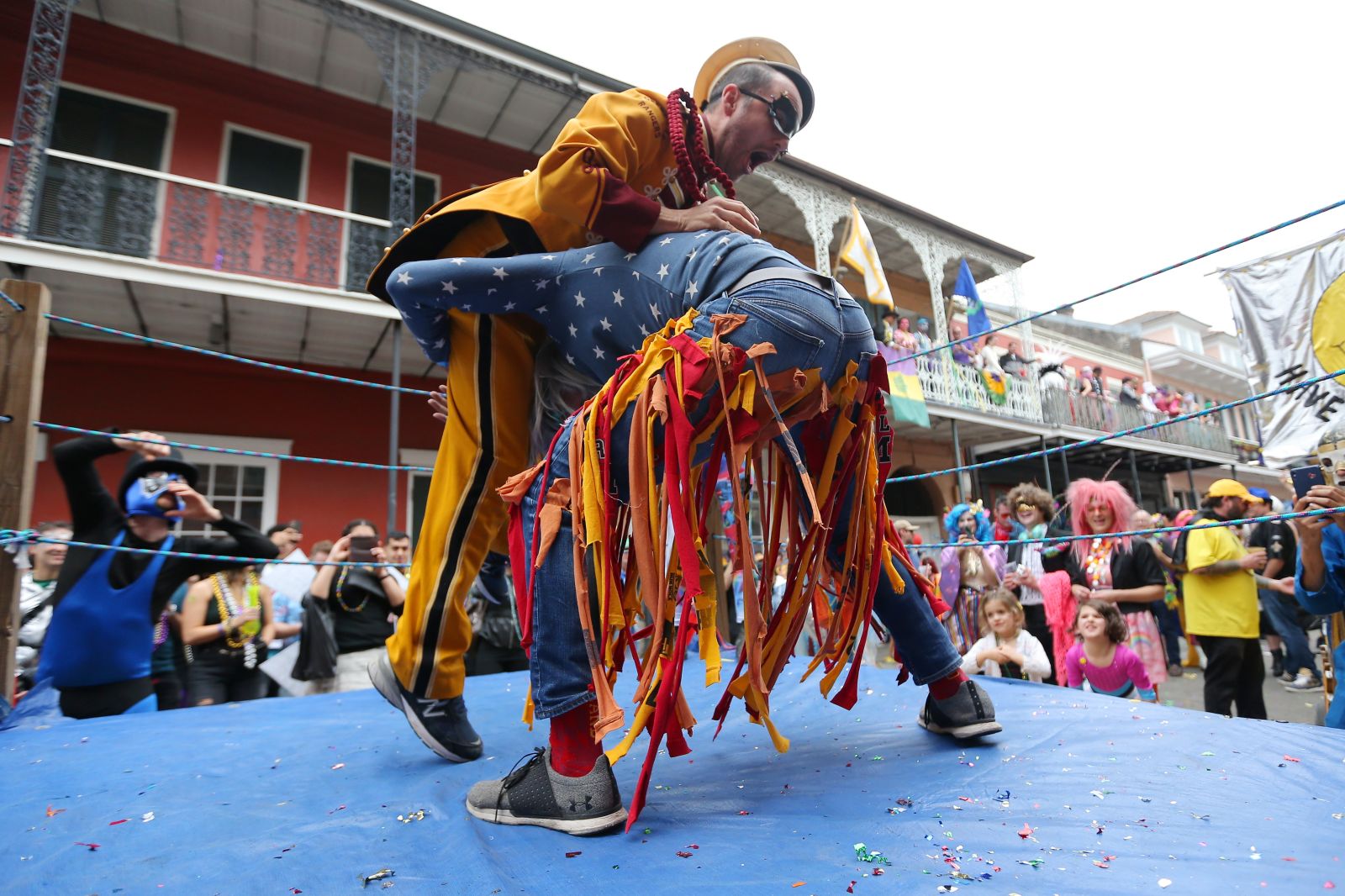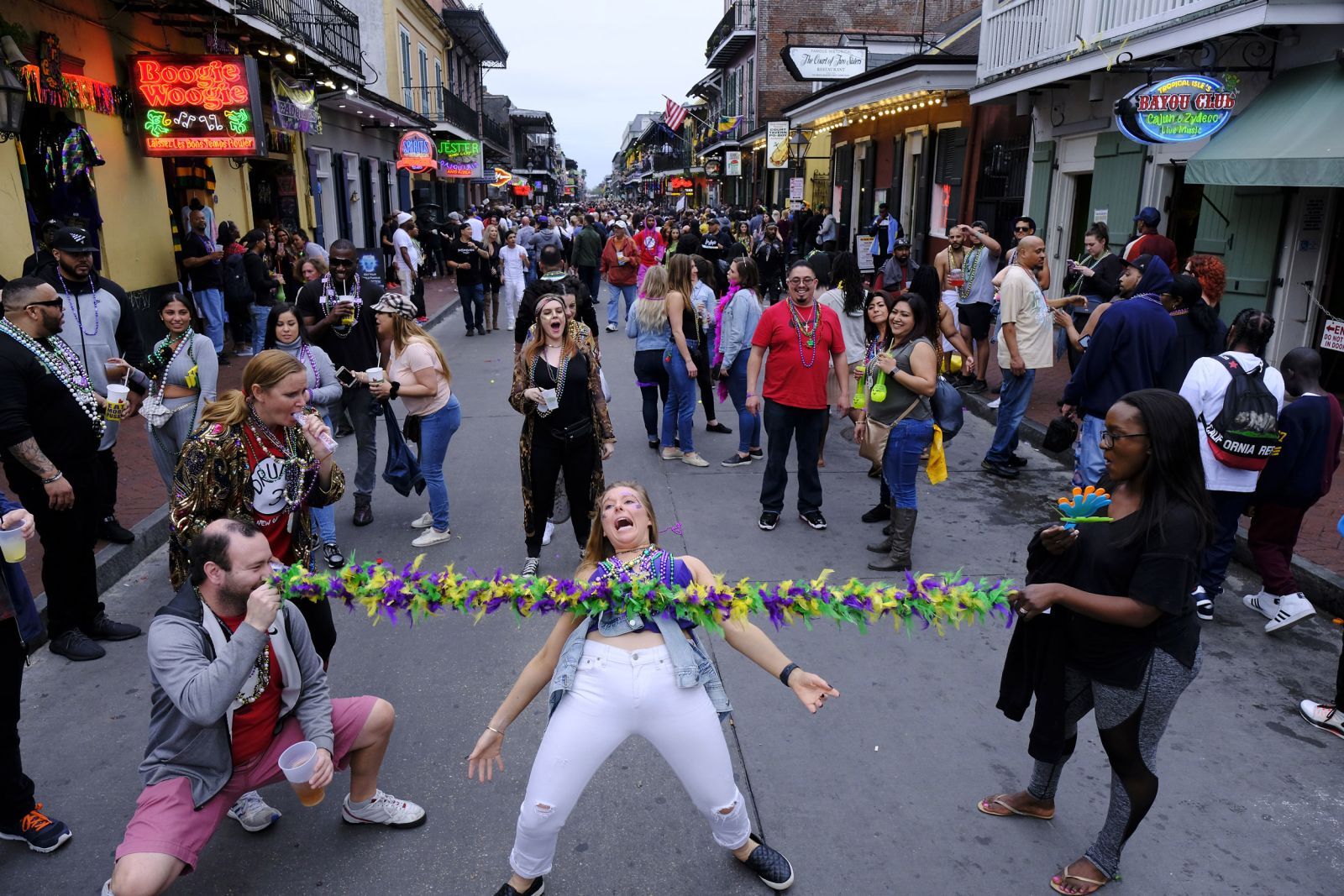 crowding the streets in the French Quarter, the