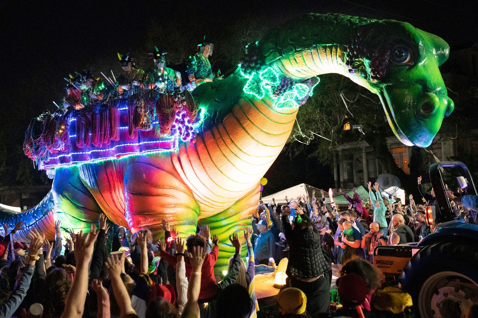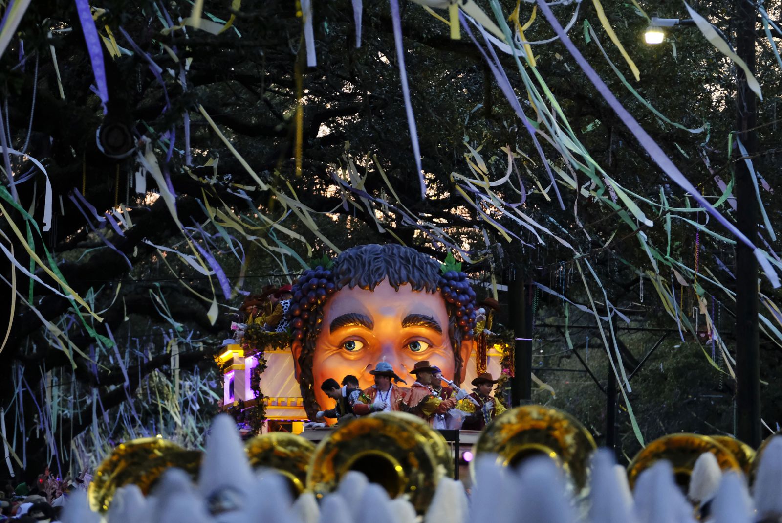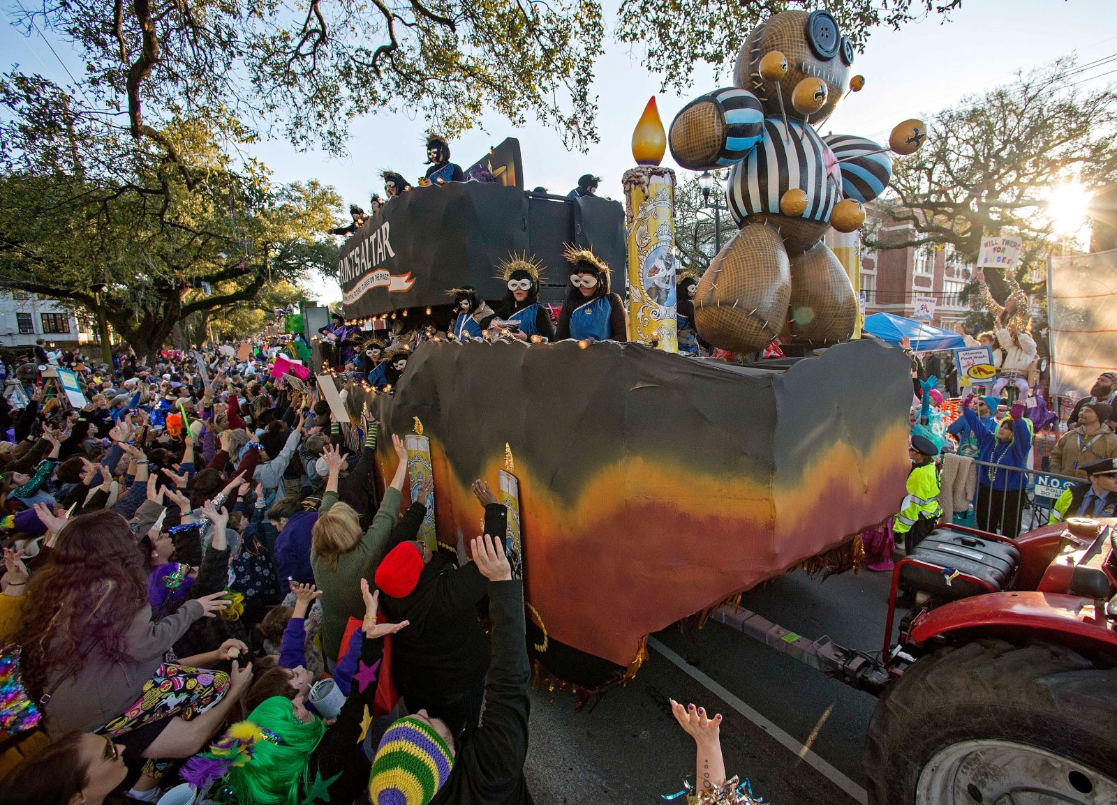 under the wheels of a Krewe of Nyx float on