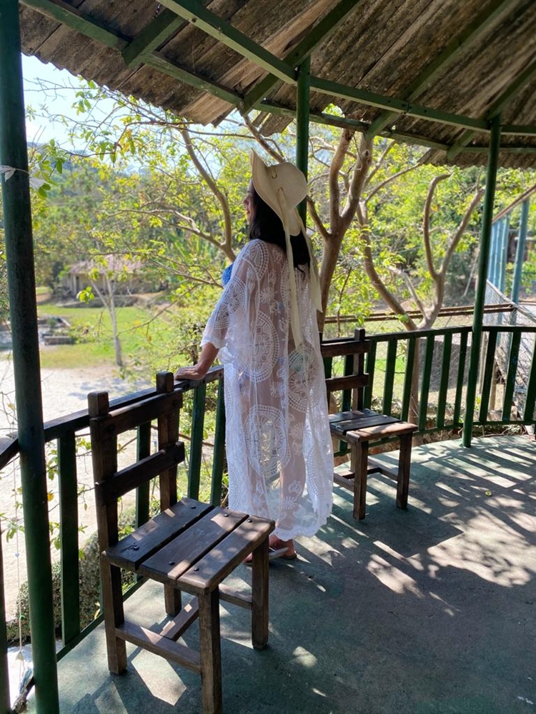 vestiu uma saída de praia branca para