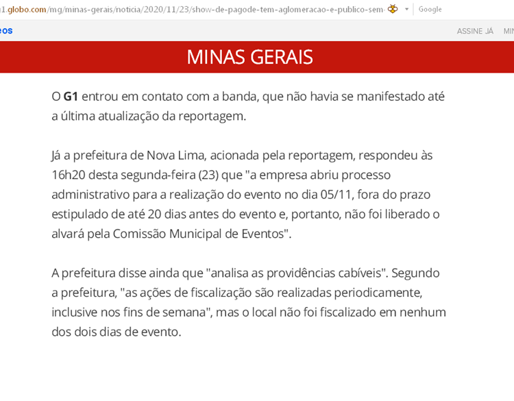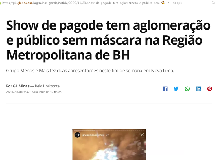 plena pandemia com aumento de casos na grande BH, show de pagode com