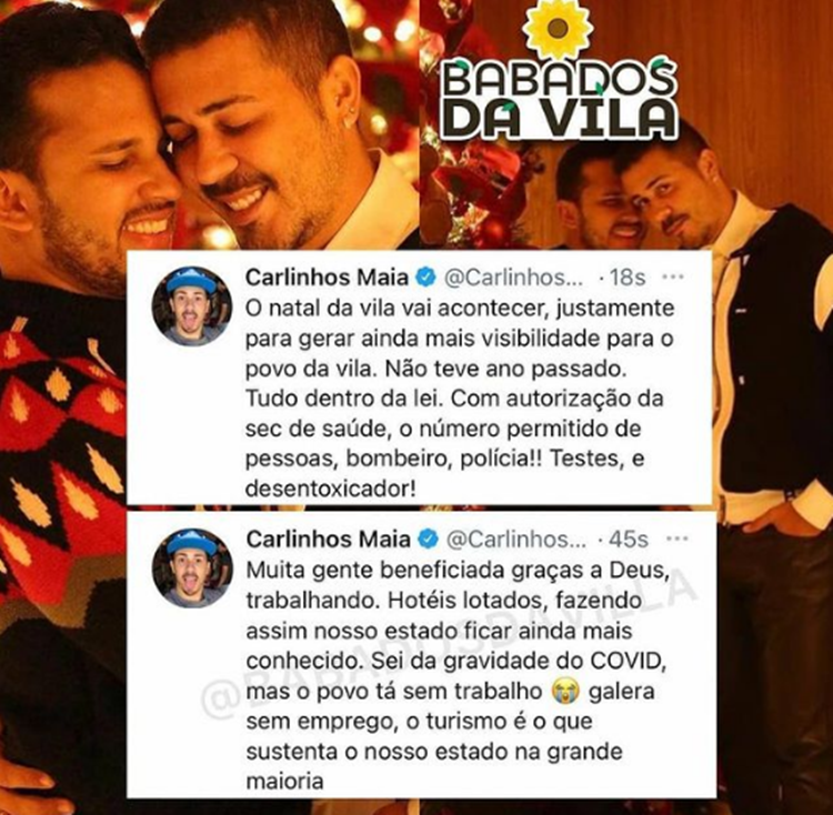 uma das publicações, Carlinhos Maia declarou que