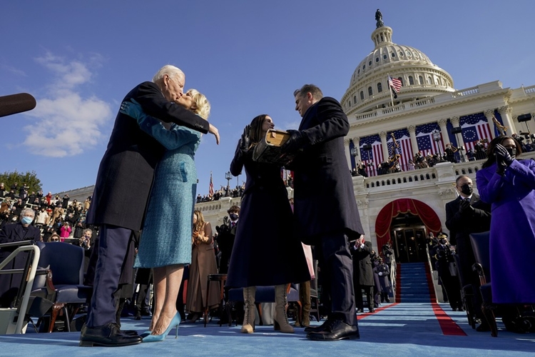 no Capitólio, onde Biden e a vice, Kamala Harris,