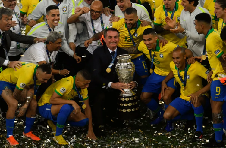 posou com a taça da Copa América de 2019 após a