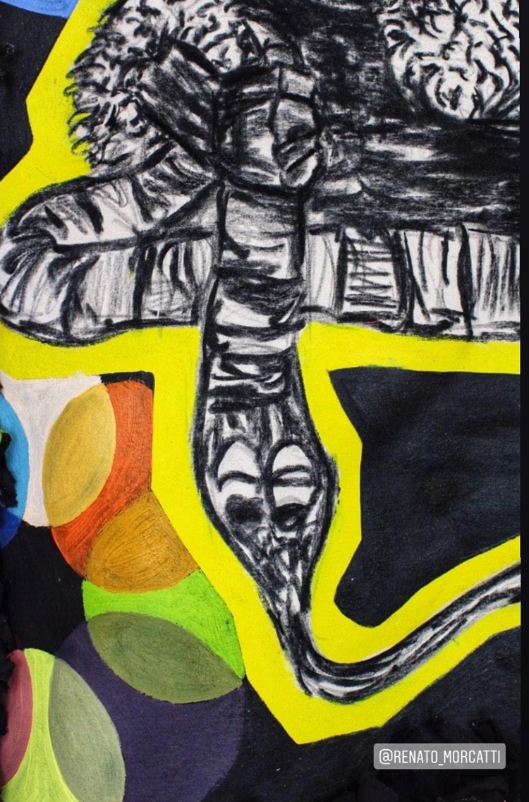 de pinturas, colagens e materiais diversos. O