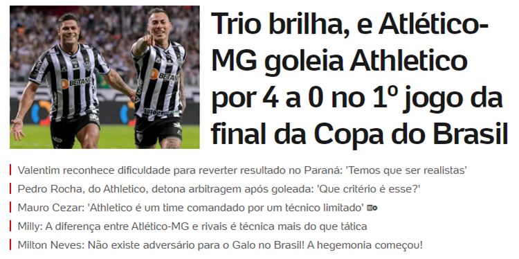 brilha em vitória sobre o Atlhético na final da Copa do Brasil