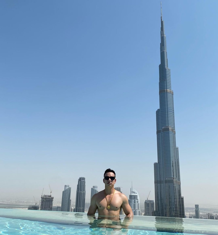 frente ao Burj Kalifa, maior prédio do mundo. Em Londres,