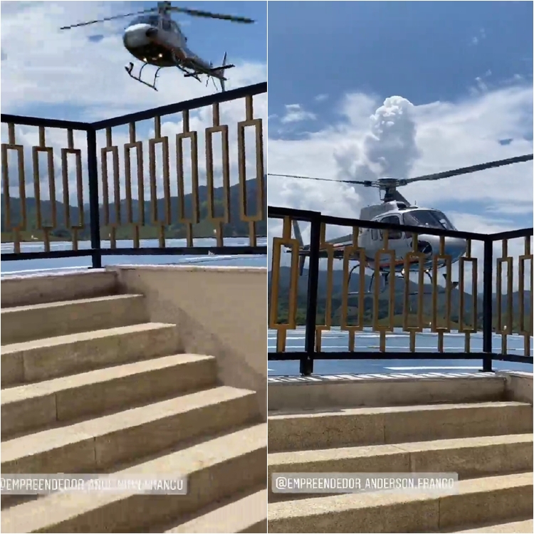 anfitrião chegou de helicóptero, sobrevoando a