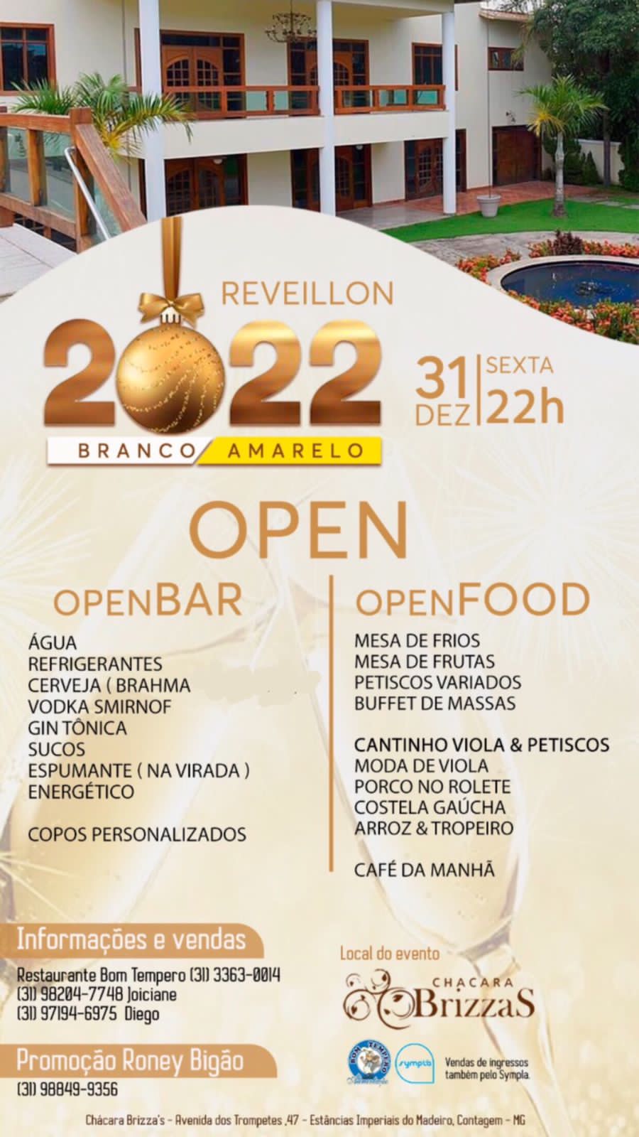 na Chácara Brizzas. Ambas as festas são open bar