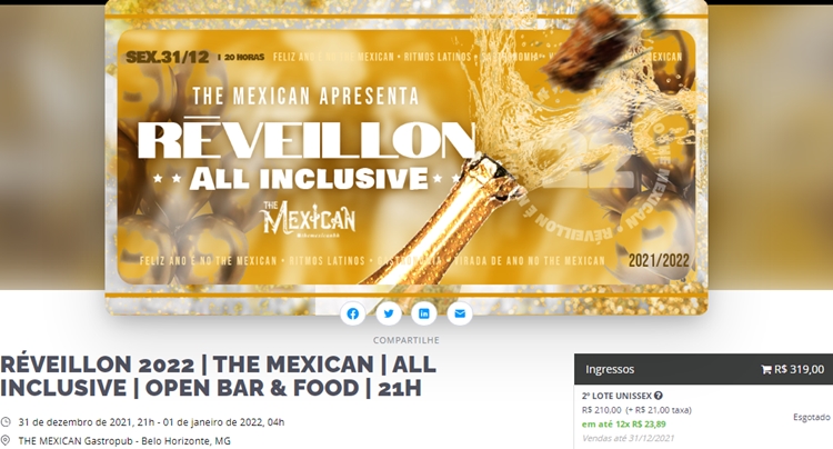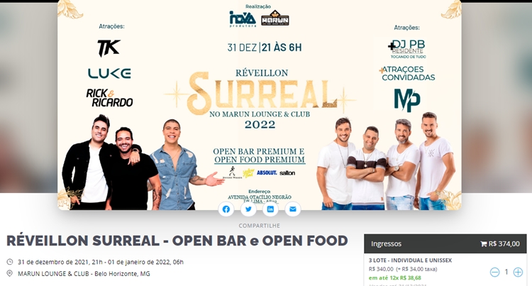oferece open bar e open food por R$ 360,00.