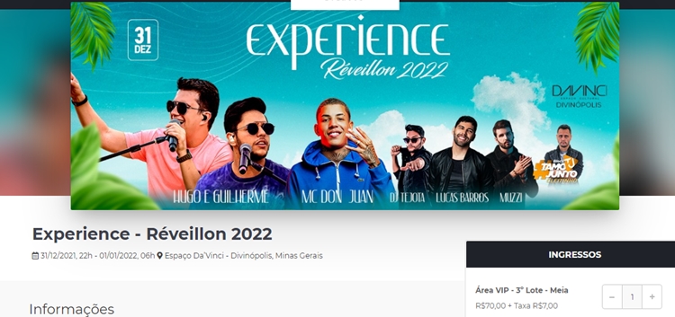 ingressos à venda nos principais sites de eventos