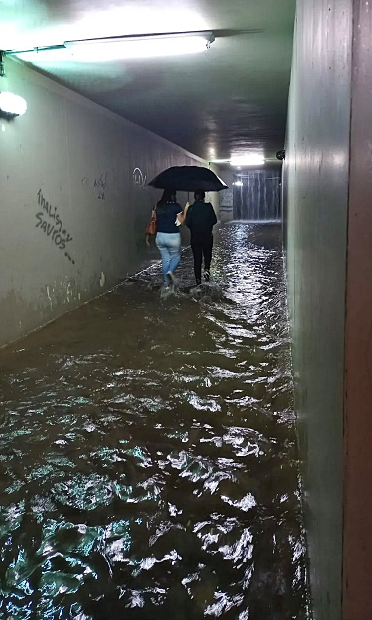 proteger em meio à via totalmente alagada.