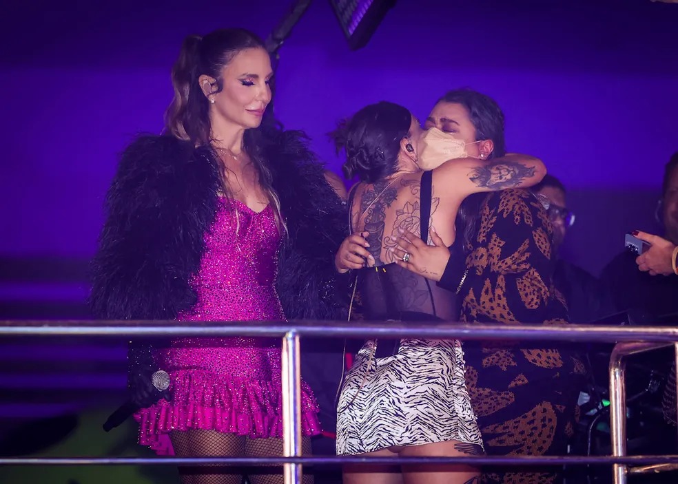 sendo amparada por Ivete. A emoção tomou