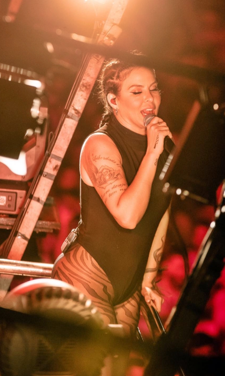 amiga, Preta Gil. Durante um show da cantora