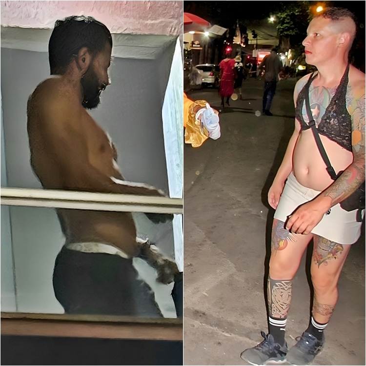 no centro da cidade, fantasiados de personagens