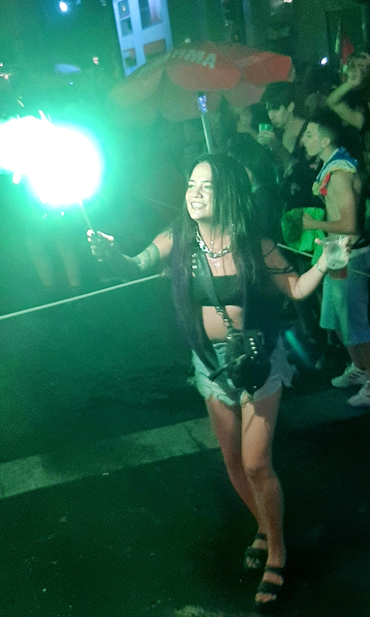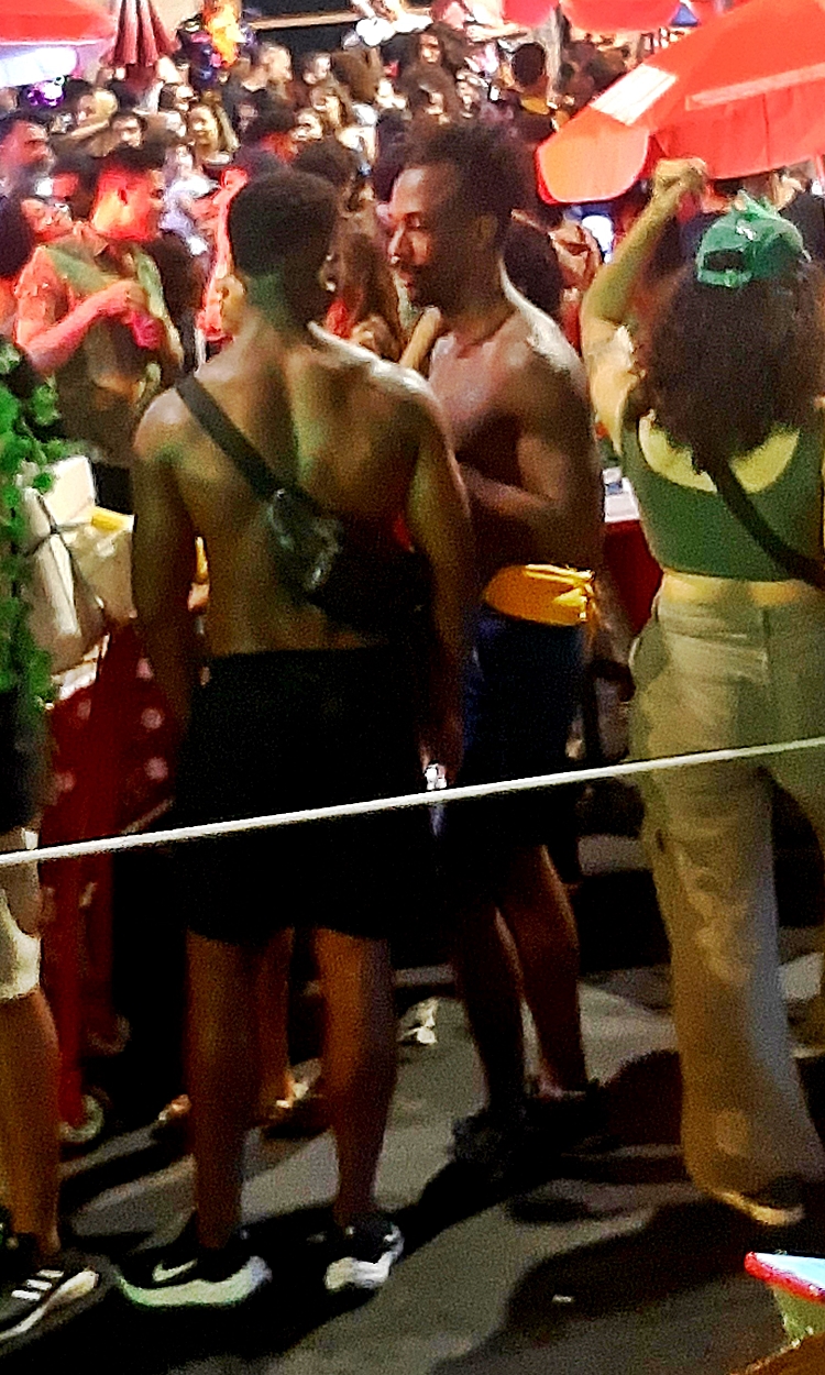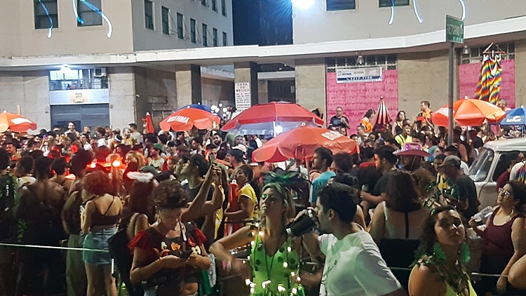 onde os foliões, vestindo fantasias e sorrisos,