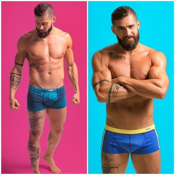 estão bem recheadas. Nela, o lutador que fez sucesso no Big Brother Brasil posa fazendo caras e bocas e estrela a linha da Beau Homme. E há modelos de diversas cores, estampas e elásticos.