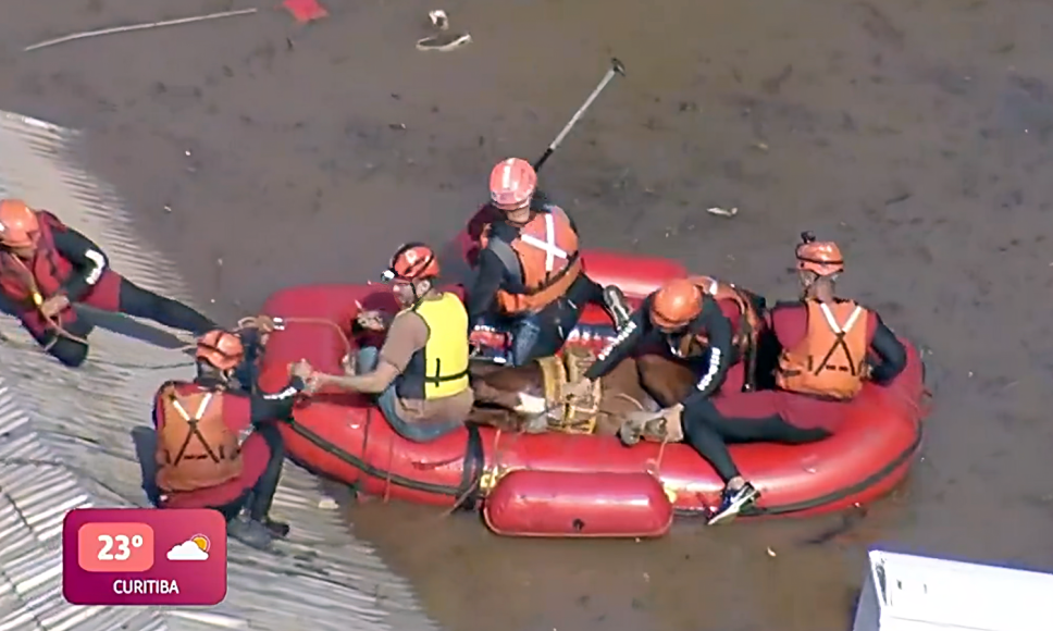 Rio no sábado, 4/5/24. A vinheta traz imagens do